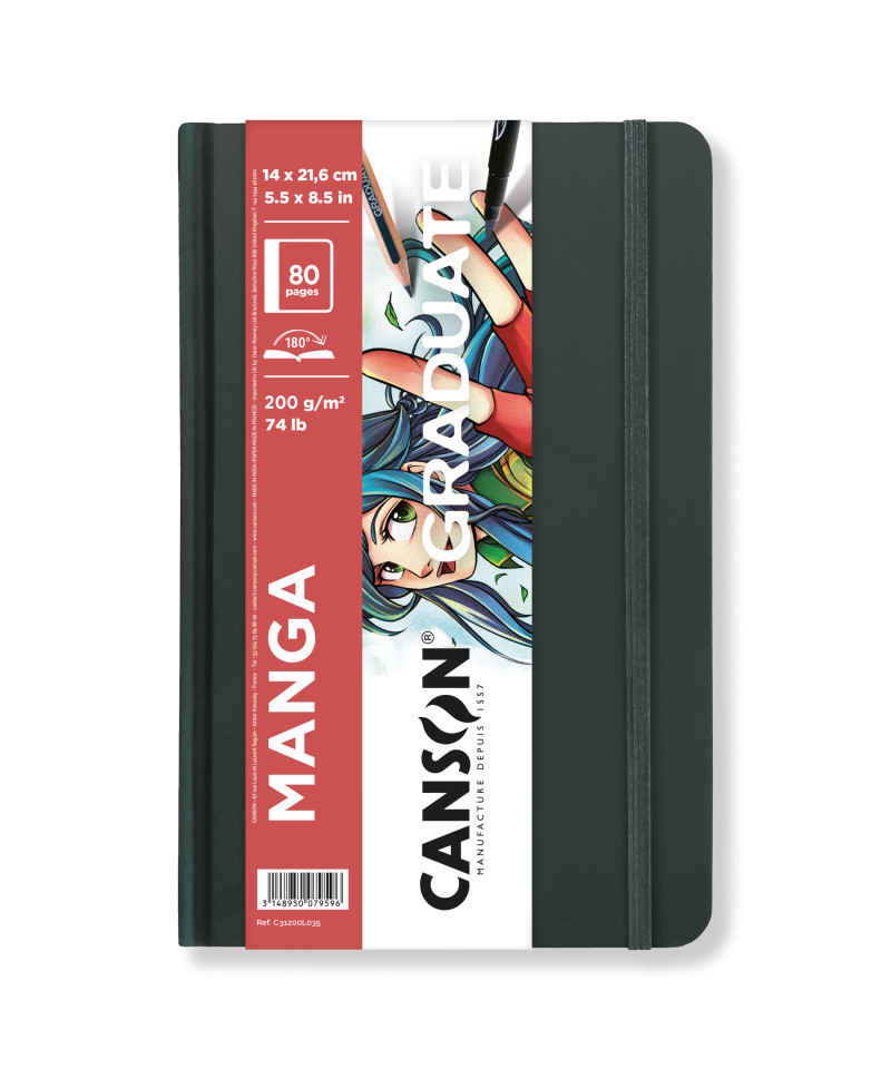 Bring manga, comics, and character illustrations to life with the Graduate Manga Art Sketchbook, 200 gsm (74 lb), 80 Sheets, 5.5x8.5 in by Canson. Designed specifically for students, hobbyists, and emerging illustrators, this portable sketchbook features heavyweight 200 gsm paper ideal for inking, markers, technical pens, fineliners, and dry media. The smooth surface allows clean, precise line work while supporting light layering, shading, and alcohol marker blending with minimal bleed-through.
