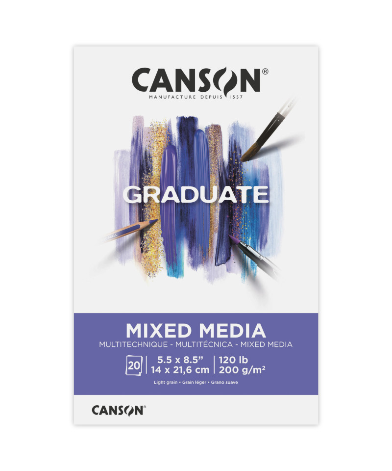 Canson, the experts in paper production, has been delivering fine art surfaces to the world’s master artists since 1557. Located in the South of France, the artisans continue their craft, relying on generations of knowledge enhanced with superior technology. The Canson Graduate range brings this legacy in an accessible form for students and beginner hobbyists. Featuring a wide range of paper for many techniques, Canson Graduate includes sketching, drawing, mixed media, illustration, lettering, Manga, watercolors, acrylic painting, oil painting paper and more! Each pad is available in the three sizes most popular in classroom and art studio practices — 5.5 x 8.5 inch, 9 x 12 inch and 11x14 inch.