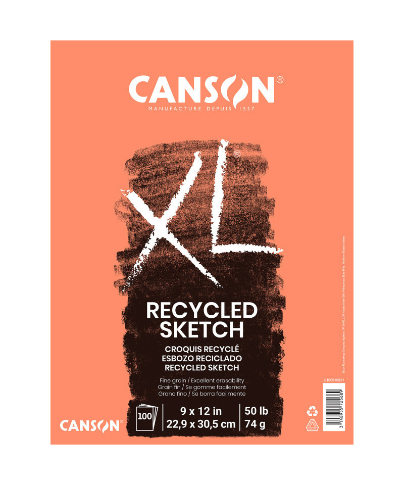 Canson XL Series Sketch Pad, Recycled, Foldover Binding, 100 Sheet, 9x12 inch, 1 Count