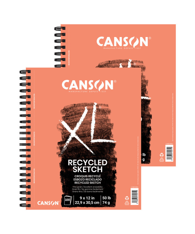 Canson XL Series Sketch Pad, Recycled, Side Wire Binding, 100 Sheet, 9x12 inch, Pack of 2