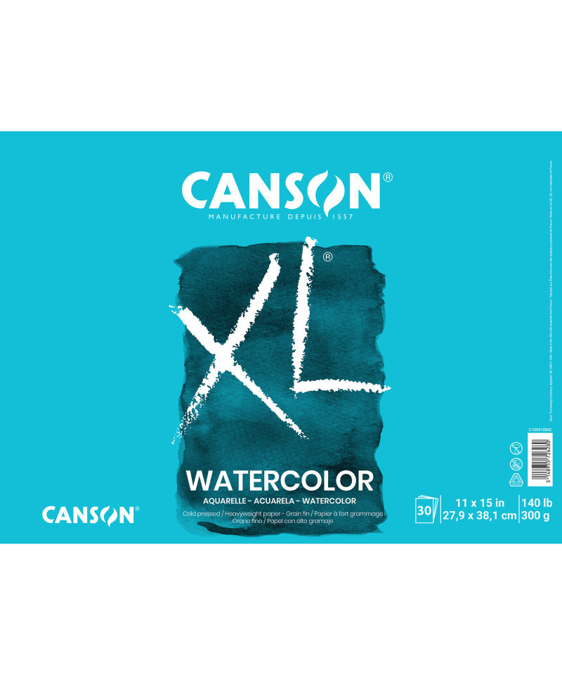 Canson XL Series Watercolor Pad, Heavyweight White Paper, Foldover Binding, 30 Sheets, 11x15 inch, 1 Count