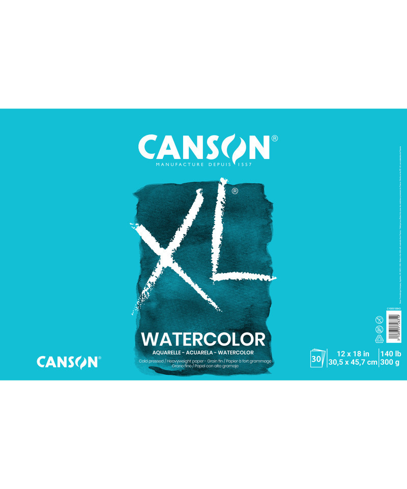We all love Canson XL Series Watercolor Paper! Trusted for decades by artists, students, hobbyists, and art teachers. Each midweight sheet is crafted with care to obtain that perfect paper texture and provide a sturdy foundation for multiple washes and layers without warping or buckling. For those of you nerdy enough to know better, our paper is 90lb/185gsm (which means the pre-cut “ream” of full-size sheets weighs 90 pounds and a single sheet of one square meter weighs 185 grams). All of this just means Canson XL watercolor paper has good absorbency and strength. So, go at it with bright colors, gradients, and detailed strokes, and even mix things up with gouache or acrylic paint for a mixed media effect. The Canson XL Series was created with students and teachers in mind – affordable, high-sheet count options with an intermediate-level performance sufficient for technical practice and showcases. Once artists are confident enough in their skillset, we recommend transitioning over to the Canson Artist Series family of paper for a museum-quality look and feel.