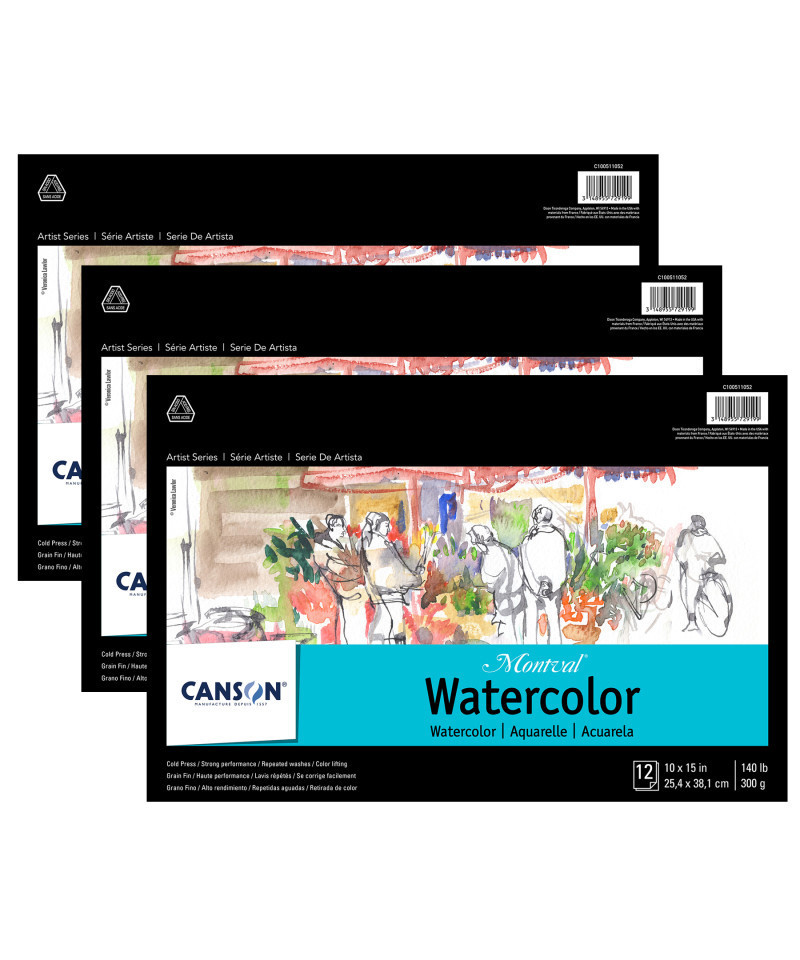 Canson Artist Series Montval Watercolor Pad, Foldover Binding, Foldover Binding, 12 Sheet, 10x15 inch, Pack of 3