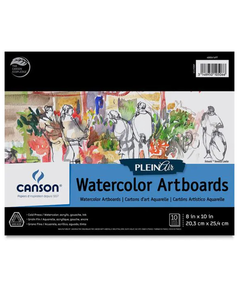 Canson Artist Series Montval Plein Air Watercolor Board, Foldover Binding, 10 Sheet, 8x10 inch, 1 Count