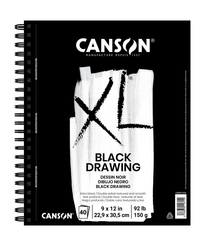 Create striking artwork with these black sheets that make your colors pop against a fade-resistant backdrop. Each two-sided, midweight sheet is built to handle layers of colored pencil, pastel, pen, & marker, with one textured side & one smooth side for versatile techniques. Featuring a durable cover, sturdy wire binding, & chipboard backing, this sketchbook is perfect for practice or final pieces, ready to go wherever your creativity takes you. With a rich heritage spanning over four centuries, the Canson brand has firmly established itself as a trusted & renowned name in the art world. Since its inception in 1557, Canson has been synonymous with quality & innovation, serving as a go-to choice for artists of all levels. The Canson XL range was specifically developed to meet the needs of art students—high sheet counts, various textures & weights, & sturdy binding at an affordable price. Students can explore their personal tastes & techniques across drawing, paint, & mixed media art forms. Once artists are confident enough in their skillset, we recommend transitioning over to the Canson Artist Series family of paper for a museum-quality look & feel.