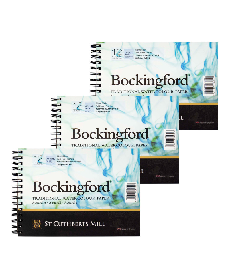 Experience the magic of Bockingford® — a stunning English watercolor paper crafted with tradition & precision at St Cuthberts Mill. Created on a classic cylinder mould machine, this high-quality paper is made from pure, archival-grade materials, ensuring your artwork stands the test of time. The unique, random texture of Bockingford® comes from natural woolen felts, making each sheet a tactile delight. Its exceptional color-lifting abilities & forgiving nature make it a dream canvas for both seasoned pros & aspiring artists alike. Bockingford® brings you premium watercolor paper without the premium price tag, offering the perfect balance of quality & affordability. Unlock your creativity & let your art shine on a surface designed for brilliance! For centuries, St Cuthberts has honed the art of papermaking. Our legacy, combined with one of the world's rare cylinder mould machines, crafts papers of unparalleled quality. We commit to using only the purest raw materials, ensuring our archival papers meet the highest standards. Specially sourced pulps, cotton linters & woolen felts create surface textures that are as unique as they are exquisite. It's no wonder that artists around the globe choose St Cuthberts for their masterpieces. Bockingford® is a stunning English watercolor paper crafted with care & meticulously made from pure materials to archival standards, its beautiful surface is achieved through natural woolen felts, creating a unique, random texture that artists adore. Renowned for its superb color lifting properties, Bockingford® is a favorite among both professionals & enthusiasts for its forgiving nature. Sold as a pack of 3.