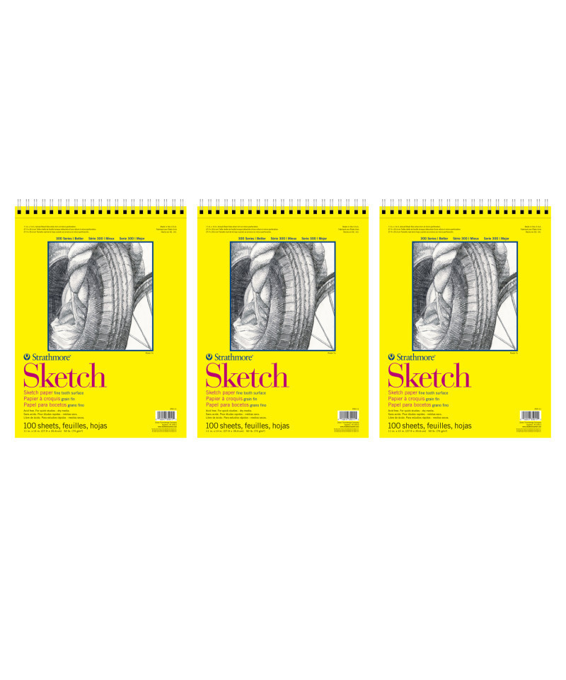 Strathmore 300 Series Sketch Pad, Side Wire Binding, 100 Sheets, 11x14 inch, Pack of 3