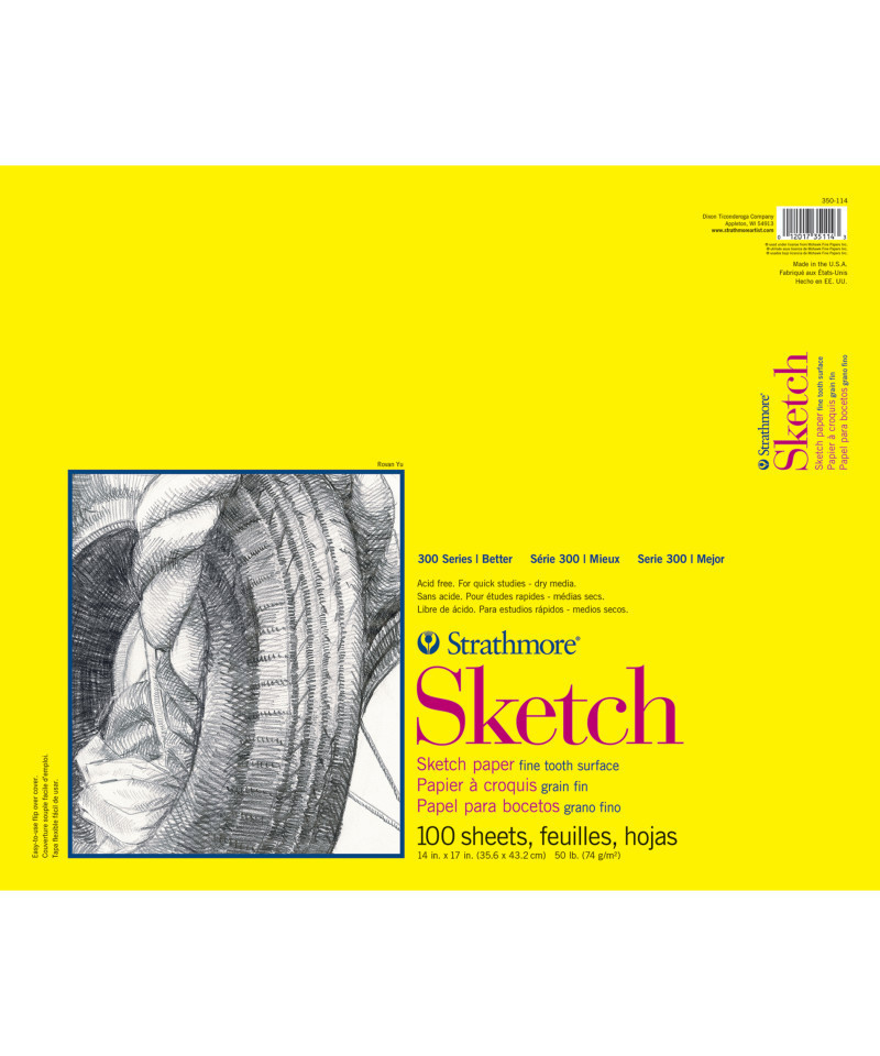 Strathmore 300 Series Sketch Pad, Glue Binding, 100 Sheets, 14x17 inch