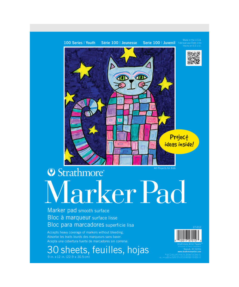 Marker paper for art class, daycare, craft nights & home school! Teach your kids the basics of drawing with a smooth, white paper made specifically for felt-tip markers—paper prevents bleeding & feathering so marker lines are crisp & clean. Explore the creative process with imaginative projects, investigate how a child sees the world around them & lay the ground work of shapes, light & shadow, color, outlines & proportions. The history of Strathmore Paper Company began on St. Patrick's Day in 1892 when its founder, Horace Moses, opened the Mittineague Paper Mill in West Springfield, MA. Strathmore has been a leading supplier of fine art papers for 130 years & founded with the belief that better paper makes better art. Strathmore provides artists of all levels with one of the widest ranges of quality surfaces for producing beautiful works of art, no matter the choice of medium. Listening to the needs of artists & providing inspiration, education, & innovating new products is at the core of what matters to Strathmore. Strathmore Paper Made for Kids! The 100 Series was created to nurture talent & ignite a lifelong love of art by providing artist quality materials at a young age. Designed for ages 5 & up, the paper types & features have been selected to enhance the creative process. Inspirational project ideas are included on the inside front cover of specially marked items.
