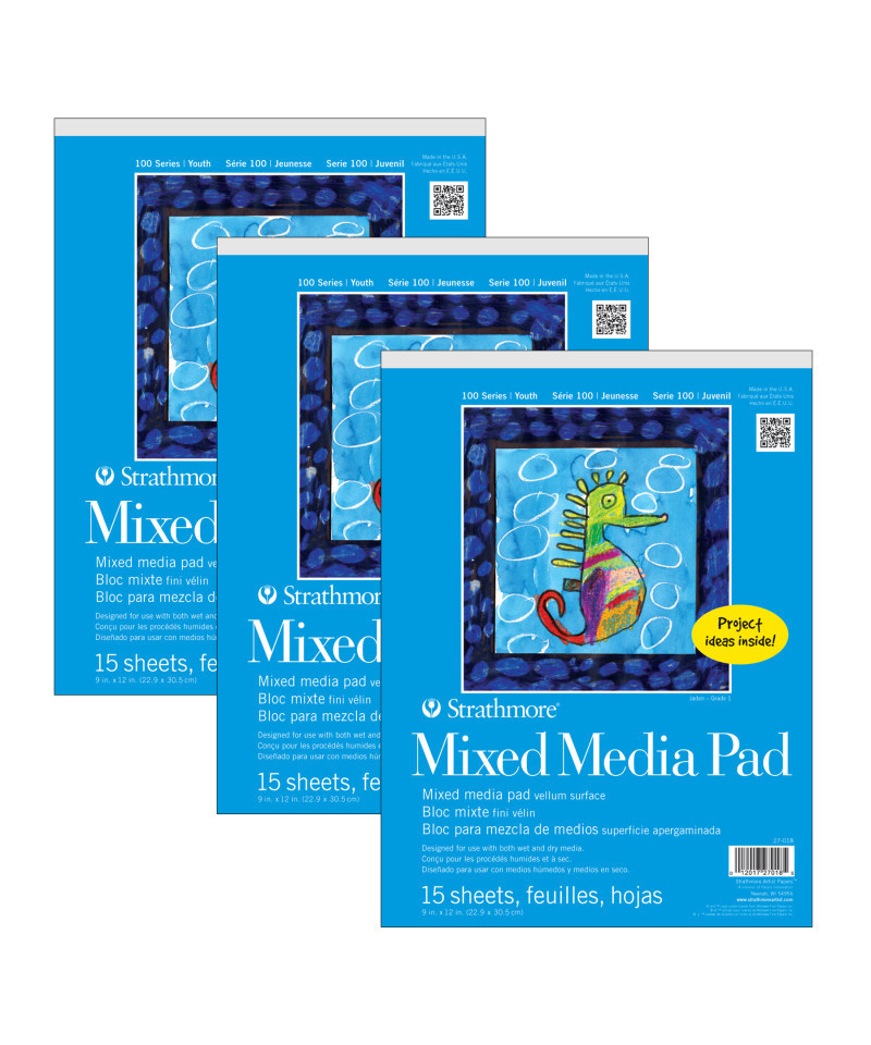 Mixed media paper for art class, daycare, craft nights & home school! Teach your kids the basics of drawing & combining different materials with a textured surface designed to manage layers of watercolor paint, colored pencil, marker & pen. Explore the creative process with imaginative projects, investigate how a child sees the world around them & lay the ground work of shapes, light & shadow, color, outlines & proportions. The history of Strathmore Paper Company began on St. Patrick's Day in 1892 when its founder, Horace Moses, opened the Mittineague Paper Mill in West Springfield, MA. Strathmore has been a leading supplier of fine art papers for 130 years & founded with the belief that better paper makes better art. Strathmore provides artists of all levels with one of the widest ranges of quality surfaces for producing beautiful works of art, no matter the choice of medium. Listening to the needs of artists & providing inspiration, education, & innovating new products is at the core of what matters to Strathmore. Strathmore Paper Made for Kids! The 100 Series was created to nurture talent & ignite a lifelong love of art by providing artist quality materials at a young age. Designed for ages 5 & up, the paper types & features have been selected to enhance the creative process. Inspirational project ideas are included on the inside front cover of specially marked items. Sold as a pack of 3.