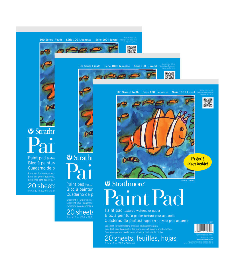 Paint paper for art class, daycare, craft nights & home school! Teach your kids the basics of painting with a moisture-resistant, textured surface designed to manage layers of watercolor paint, poster paint & markers. Explore the creative process with imaginative projects, investigate how a child sees the world around them & lay the ground work of shapes, light & shadow, color, outlines & proportions. The history of Strathmore Paper Company began on St. Patrick's Day in 1892 when its founder, Horace Moses, opened the Mittineague Paper Mill in West Springfield, MA. Strathmore has been a leading supplier of fine art papers for 130 years & founded with the belief that better paper makes better art. Strathmore provides artists of all levels with one of the widest ranges of quality surfaces for producing beautiful works of art, no matter the choice of medium. Listening to the needs of artists & providing inspiration, education, & innovating new products is at the core of what matters to Strathmore. Strathmore Paper Made for Kids! The 100 Series was created to nurture talent & ignite a lifelong love of art by providing artist quality materials at a young age. Designed for ages 5 & up, the paper types & features have been selected to enhance the creative process. Inspirational project ideas are included on the inside front cover of specially marked items. Sold as a pack of 3.
