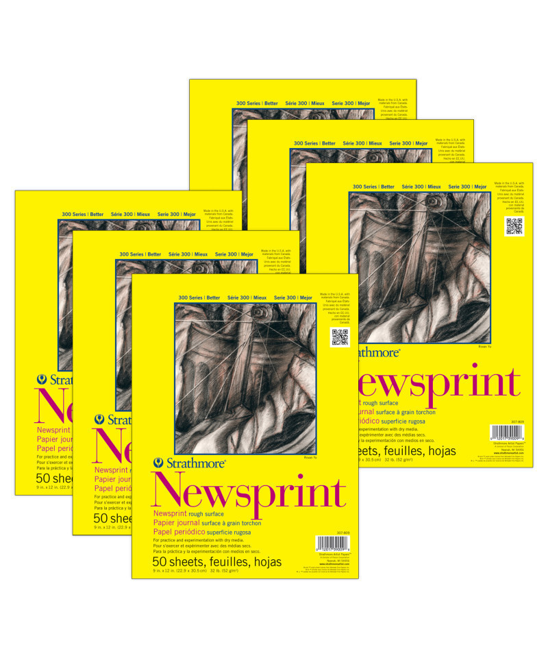 The Strathmore 300 Series Newsprint Pad contains a rough natural-toned newsprint paper for sketching & preliminary drawing. This pad is perfect for gesture sketching in graphite, charcoal, colored pencil, or sketching sticks & is a great way to hone your artistic skills. Providing you with an easy way to track your progress over time. The history of Strathmore Paper Company began on St. Patrick's Day in 1892 when its founder, Horace Moses, opened the Mittineague Paper Mill in West Springfield, MA. Strathmore has been a leading supplier of fine art papers for 130 years & founded with the belief that better paper makes better art. Strathmore provides artists of all levels with one of the widest ranges of quality surfaces for producing beautiful works of art, no matter the choice of medium. Listening to the needs of artists & providing inspiration, education, & innovating new products is at the core of what matters to Strathmore. The Strathmore 300 Series provides art students & intermediate hobbyists a range of better quality paper for quick studies, technical practice & final pieces in art class or at home. Including a wide variety of surface types, artists working with watercolor paint, acrylic paint, oil paint, pastel, colored pencil, charcoal, marker, pen, ink & more have a curated pad customized for their needs. Trusted by art teachers & affordable for parents & students, the 300 Series is the best way to help build confidence in intermediate artists! Sold as a pack of 6.