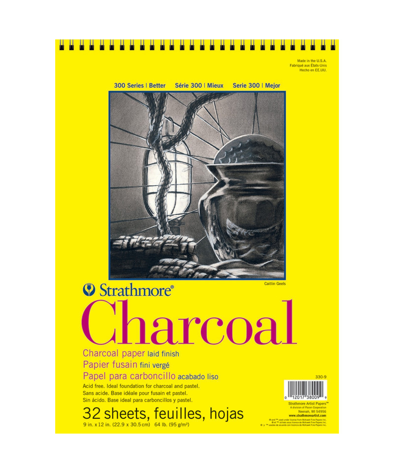 The Strathmore 300 Series Charcoal Pad contains a natural white paper with a traditional laid finish. An ideal foundation for messier mediums, this pad provides a strong surface suitable for charcoals, oil pastels, crayons, & more. The Strathmore 300 Series Charcoal Pad is perfect for artists of all levels & will help bring your creations come to life. The history of Strathmore Paper Company began on St. Patrick's Day in 1892 when its founder, Horace Moses, opened the Mittineague Paper Mill in West Springfield, MA. Strathmore has been a leading supplier of fine art papers for 130 years & founded with the belief that better paper makes better art. Strathmore provides artists of all levels with one of the widest ranges of quality surfaces for producing beautiful works of art, no matter the choice of medium. Listening to the needs of artists & providing inspiration, education, & innovating new products is at the core of what matters to Strathmore. The Strathmore 300 Series provides art students & intermediate hobbyists a range of better quality paper for quick studies, technical practice & final pieces in art class or at home. Including a wide variety of surface types, artists working with watercolor paint, acrylic paint, oil paint, pastel, colored pencil, charcoal, marker, pen, ink & more have a curated pad customized for their needs. Trusted by art teachers & affordable for parents & students, the 300 Series is the best way to help build confidence in intermediate artists!