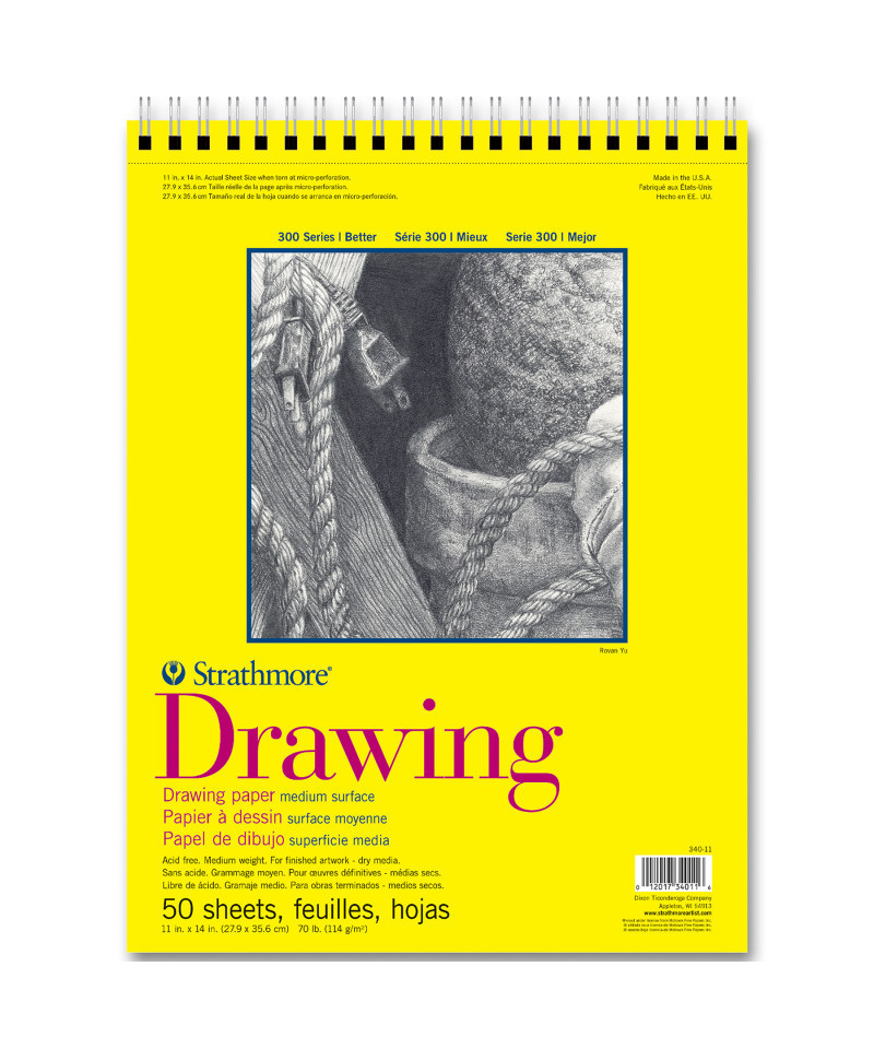 The Strathmore 300 Series Drawing Pad contains a medium weight student grade drawing paper perfect for artists of all levels. With a medium surface finish, this pad offers good erasure with pencil & colored pencil & readily accepts charcoal & sketching sticks. The Strathmore 300 Series Drawing Pad is also rated good for marker, mixed media, soft pastel, & oil pastel. The history of Strathmore Paper Company began on St. Patrick's Day in 1892 when its founder, Horace Moses, opened the Mittineague Paper Mill in West Springfield, MA. Strathmore has been a leading supplier of fine art papers for 130 years & founded with the belief that better paper makes better art. Strathmore provides artists of all levels with one of the widest ranges of quality surfaces for producing beautiful works of art, no matter the choice of medium. Listening to the needs of artists & providing inspiration, education, & innovating new products is at the core of what matters to Strathmore. The Strathmore 300 Series provides art students & intermediate hobbyists a range of better quality paper for quick studies, technical practice & final pieces in art class or at home. Including a wide variety of surface types, artists working with watercolor paint, acrylic paint, oil paint, pastel, colored pencil, charcoal, marker, pen, ink & more have a curated pad customized for their needs. Trusted by art teachers & affordable for parents & students, the 300 Series is the best way to help build confidence in intermediate artists!