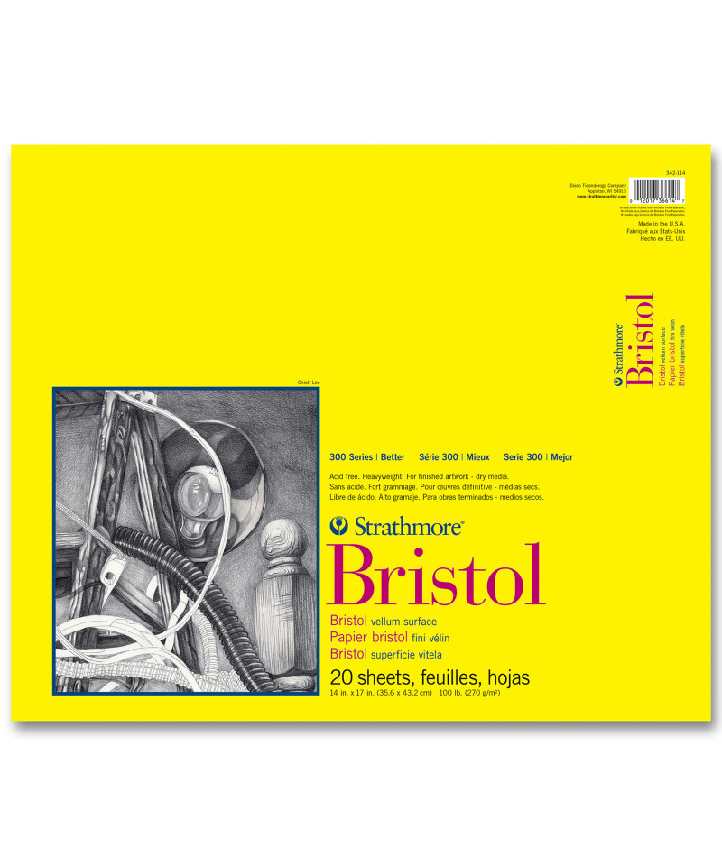 Bristol generally describes a heavyweight drawing paper. Bristol sheets provide a stiff, strong surface to work on without the need for mounting. The term Bristol derives from the early days of European papermaking when mills would send their finest papers to Bristol, England to be pasted together to form heavyweight drawing sheets. Our 300 Series Bristol paper is a popular choice among many artists because of the quality paper at a very reasonable price. It comes in a number of pad sizes, loose sheets, & large rolls. It is a 'bristol weight' at 100lb. (270gsm), & is perfect for finished art. Look for it in smooth & vellum surfaces. The history of Strathmore Paper Company began on St. Patrick's Day in 1892 when its founder, Horace Moses, opened the Mittineague Paper Mill in West Springfield, MA. Strathmore has been a leading supplier of fine art papers for 130 years & founded with the belief that better paper makes better art. Strathmore provides artists of all levels with one of the widest ranges of quality surfaces for producing beautiful works of art, no matter the choice of medium. Listening to the needs of artists & providing inspiration, education, & innovating new products is at the core of what matters to Strathmore. The Strathmore 300 Series provides art students & intermediate hobbyists a range of better quality paper for quick studies, technical practice & final pieces in art class or at home. Including a wide variety of surface types, artists working with watercolor paint, acrylic paint, oil paint, pastel, colored pencil, charcoal, marker, pen, ink & more have a curated pad customized for their needs. Trusted by art teachers & affordable for parents & students, the 300 Series is the best way to help build confidence in intermediate artists!