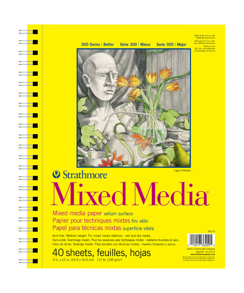 Strathmore 300 Series Mixed Media Pad, Side Wire Binding, 40 Sheet, 9x12 inch, 1 Count