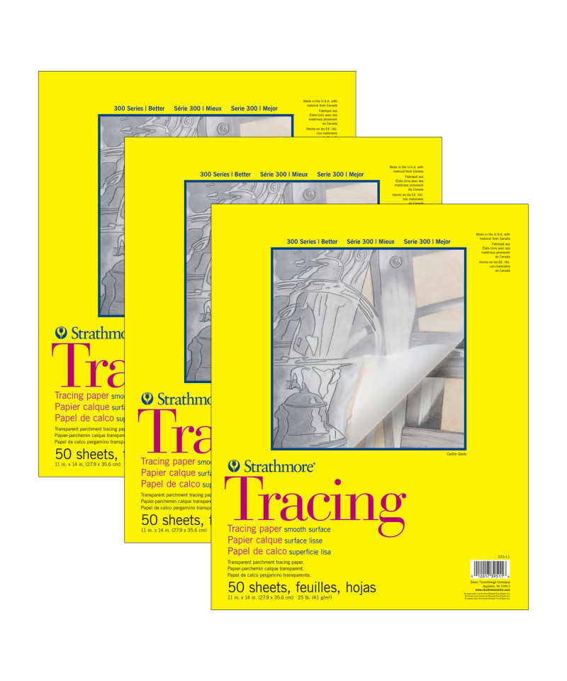 Strathmore 300 Series Tracing Pad, Tape Binding, 50 Sheet, 11x14 inch, Pack of 3