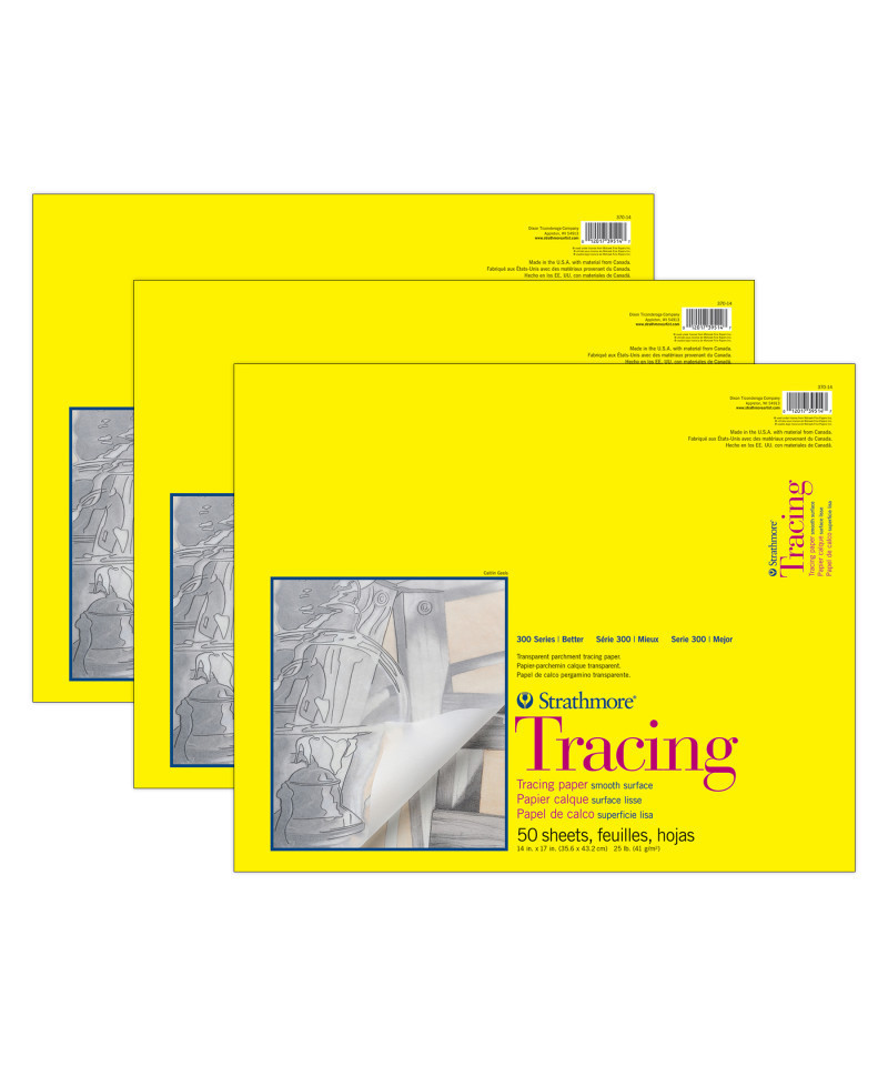 Strathmore 300 Series Tracing Pad, Tape Binding, 50 Sheet, 14x17 inch, Pack of 3