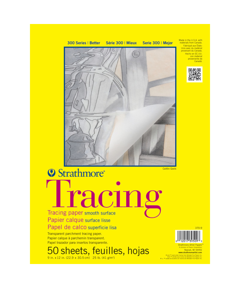 The Strathmore 300 Series Tracing Pad contains a smooth parchment tracing paper with optimum transparency for pencil, marker, & ink. Perfect for practice & honing your drawing skills, the Strathmore 300 Series Tracing Pad is ideal for tracing images, sketching, preliminary drawings, & overlays. The history of Strathmore Paper Company began on St. Patrick's Day in 1892 when its founder, Horace Moses, opened the Mittineague Paper Mill in West Springfield, MA. Strathmore has been a leading supplier of fine art papers for 130 years & founded with the belief that better paper makes better art. Strathmore provides artists of all levels with one of the widest ranges of quality surfaces for producing beautiful works of art, no matter the choice of medium. Listening to the needs of artists & providing inspiration, education, & innovating new products is at the core of what matters to Strathmore. The Strathmore 300 Series provides art students & intermediate hobbyists a range of better quality paper for quick studies, technical practice & final pieces in art class or at home. Including a wide variety of surface types, artists working with watercolor paint, acrylic paint, oil paint, pastel, colored pencil, charcoal, marker, pen, ink & more have a curated pad customized for their needs. Trusted by art teachers & affordable for parents & students, the 300 Series is the best way to help build confidence in intermediate artists!