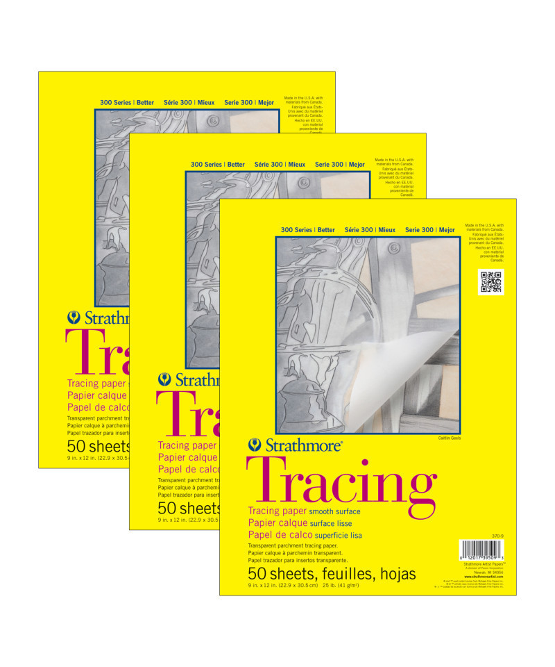 The Strathmore 300 Series Tracing Pad contains a smooth parchment tracing paper with optimum transparency for pencil, marker, & ink. Perfect for practice & honing your drawing skills, the Strathmore 300 Series Tracing Pad is ideal for tracing images, sketching, preliminary drawings, & overlays. The history of Strathmore Paper Company began on St. Patrick's Day in 1892 when its founder, Horace Moses, opened the Mittineague Paper Mill in West Springfield, MA. Strathmore has been a leading supplier of fine art papers for 130 years & founded with the belief that better paper makes better art. Strathmore provides artists of all levels with one of the widest ranges of quality surfaces for producing beautiful works of art, no matter the choice of medium. Listening to the needs of artists & providing inspiration, education, & innovating new products is at the core of what matters to Strathmore. The Strathmore 300 Series provides art students & intermediate hobbyists a range of better quality paper for quick studies, technical practice & final pieces in art class or at home. Including a wide variety of surface types, artists working with watercolor paint, acrylic paint, oil paint, pastel, colored pencil, charcoal, marker, pen, ink & more have a curated pad customized for their needs. Trusted by art teachers & affordable for parents & students, the 300 Series is the best way to help build confidence in intermediate artists! Sold as a pack of 3.