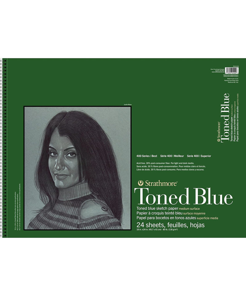 Strathmore 400 Series Sketch Pad, Recycled, Toned Blue, Side Wire Binding, 24 Sheet, 18x24 inch, 1 Count