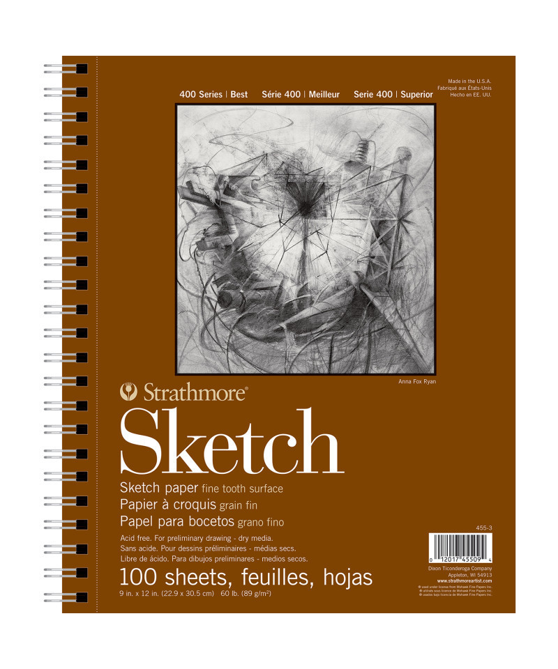 Introducing the Strathmore 400 Series Sketch Pad—a trusted companion for art students for decades, beloved for its reliability & quality. This sketch paper's toothy surface is perfect for capturing the nuances of every pencil stroke, while its durable construction withstands heavy erasing & blending. For professional artists, it offers a familiar yet refined experience, making it the go-to choice for sketches that demand both precision & spontaneity. The history of Strathmore Paper Company began on St. Patrick's Day in 1892 when its founder, Horace Moses, opened the Mittineague Paper Mill in West Springfield, MA. Strathmore has been a leading supplier of fine art papers for 130 years & founded with the belief that better paper makes better art.