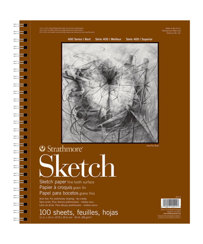 Introducing the Strathmore 400 Series Sketch Pad—a trusted companion for art students for decades, beloved for its reliability & quality. This sketch paper's toothy surface is perfect for capturing the nuances of every pencil stroke, while its durable construction withstands heavy erasing & blending. For professional artists, it offers a familiar yet refined experience, making it the go-to choice for sketches that demand both precision & spontaneity. The history of Strathmore Paper Company began on St. Patrick's Day in 1892 when its founder, Horace Moses, opened the Mittineague Paper Mill in West Springfield, MA. Strathmore has been a leading supplier of fine art papers for 130 years & founded with the belief that better paper makes better art. Strathmore provides artists of all levels with one of the widest ranges of quality surfaces for producing beautiful works of art, no matter the choice of medium. Listening to the needs of artists & providing inspiration, education, & innovating new products is at the core of what matters to Strathmore. The Strathmore 400 Series, easily recognized by its iconic brown cover, has been a staple in the hands of art students & professional artists. Known for its dependable quality & time-tested durability, this series of art paper provides high school art students, college art students, dedicated hobbyists & career artists a range of surfaces from practice to final pieces. Artists working with watercolor paint, acrylic paint, oil paint, pastel, colored pencil, charcoal, marker, pen, ink & more have a curated pad customized for their needs. Confidently create showcase-worthy pieces for galleries, competitions & online market places with this beloved brand!