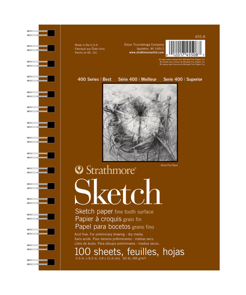 Introducing the Strathmore 400 Series Sketch Pad—a trusted companion for art students for decades, beloved for its reliability & quality. This sketch paper's toothy surface is perfect for capturing the nuances of every pencil stroke, while its durable construction withstands heavy erasing & blending. For professional artists, it offers a familiar yet refined experience, making it the go-to choice for sketches that demand both precision & spontaneity. The history of Strathmore Paper Company began on St. Patrick's Day in 1892 when its founder, Horace Moses, opened the Mittineague Paper Mill in West Springfield, MA. Strathmore has been a leading supplier of fine art papers for 130 years & founded with the belief that better paper makes better art.