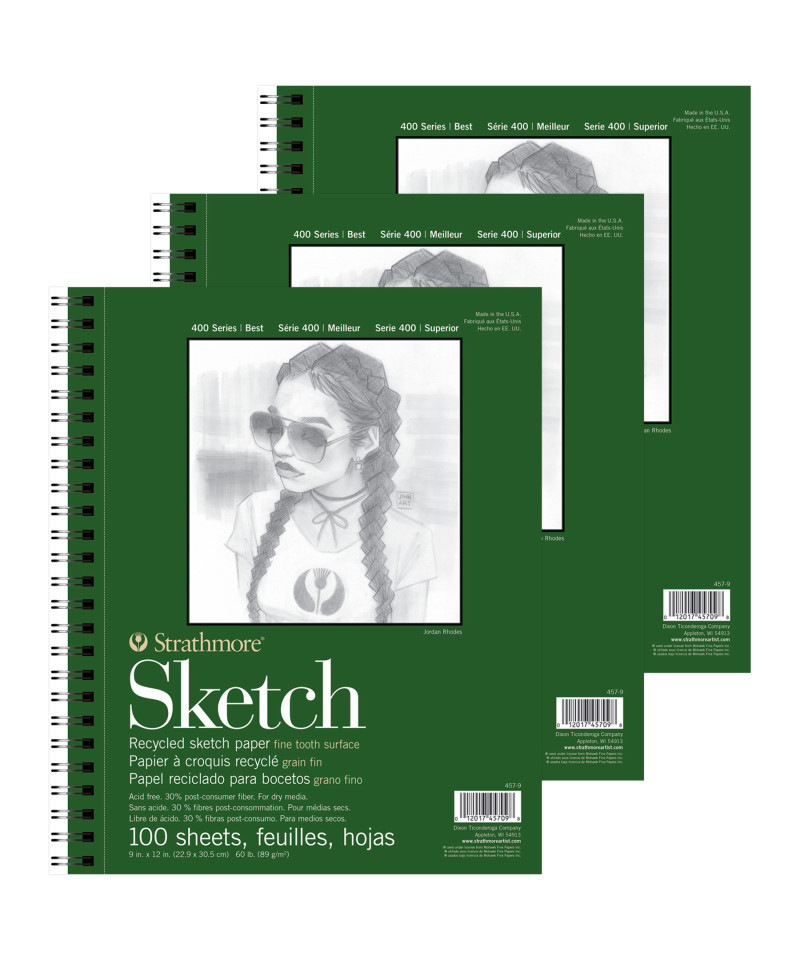 Strathmore 400 Series Sketch Pad, Recycled, Side Wire Binding, 100 Sheet, 9x12 inch, Pack of 3