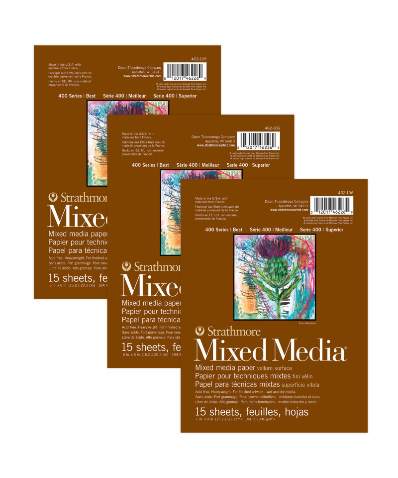 Strathmore 400 Series Mixed Media Pad, Glue Binding, 15 Sheet, 6x8 inch, Pack of 3
