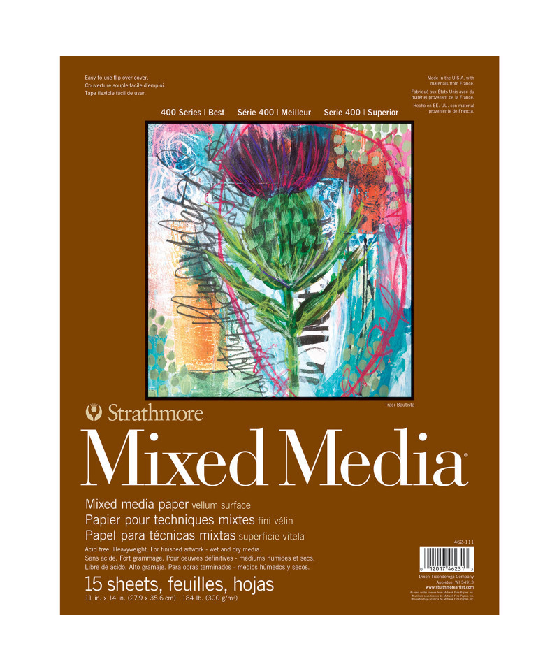 Introducing the Strathmore 400 Series Mixed Media Paper—a versatile surface for professional artists, ready to handle whatever your creativity throws at it. By combining the characteristics of watercolor paper with the finish of a drawing sheet, we've created the ultimate paper for artists to confidently explore watercolor washes, ink lines, & layers of pastel or colored pencil without fear of warping or tearing. Freely create richly dynamic pieces that truly stand out. The history of Strathmore Paper Company began on St. Patrick's Day in 1892 when its founder, Horace Moses, opened the Mittineague Paper Mill in West Springfield, MA. Strathmore has been a leading supplier of fine art papers for 130 years & founded with the belief that better paper makes better art. Strathmore provides artists of all levels with one of the widest ranges of quality surfaces for producing beautiful works of art, no matter the choice of medium. Listening to the needs of artists & providing inspiration, education, & innovating new products is at the core of what matters to Strathmore. The Strathmore 400 Series, easily recognized by its iconic brown cover, has been a staple in the hands of art students & professional artists. Known for its dependable quality & time-tested durability, this series of art paper provides high school art students, college art students, dedicated hobbyists & career artists a range of surfaces from practice to final pieces. Artists working with watercolor paint, acrylic paint, oil paint, pastel, colored pencil, charcoal, marker, pen, ink & more have a curated pad customized for their needs. Confidently create showcase-worthy pieces for galleries, competitions & online market places with this beloved brand!