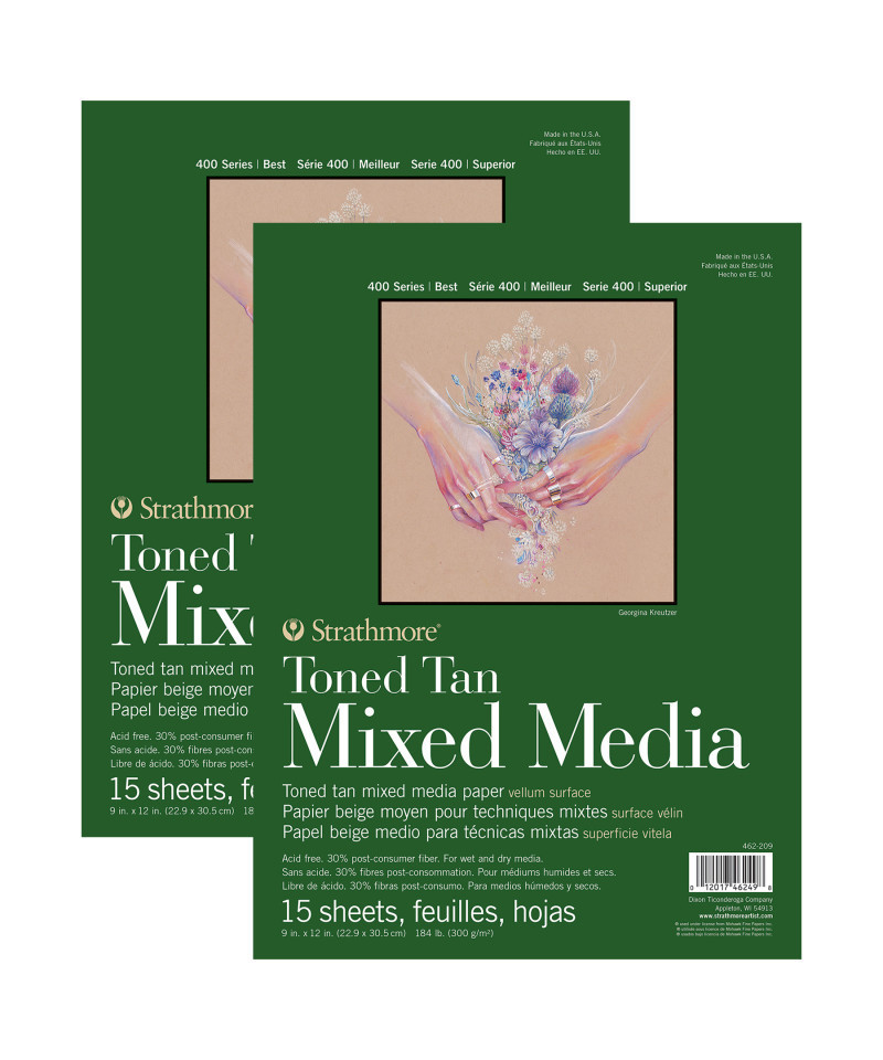 Strathmore 400 Series Mixed Media Pad, Toned Tan, Glue Binding, 15 Sheet, 9x12 inch, Pack of 2