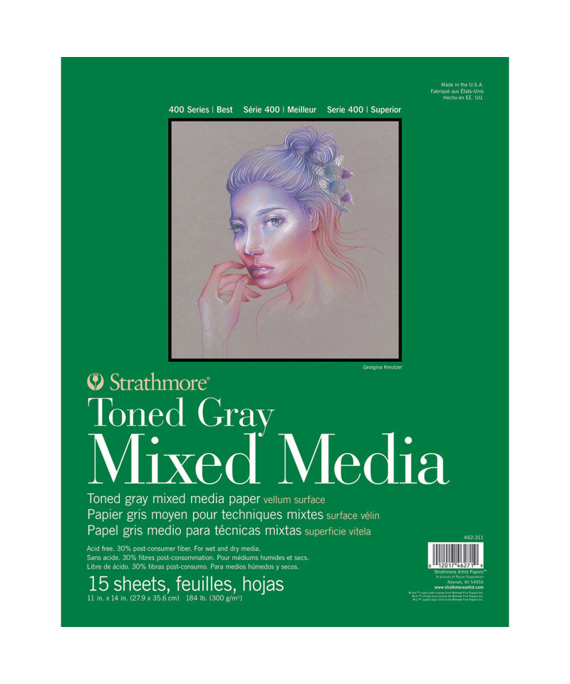 Strathmore 400 Series Mixed Media Pad, Toned Gray, Glue Binding, 15 Sheet, 11x14 inch, 1 Count