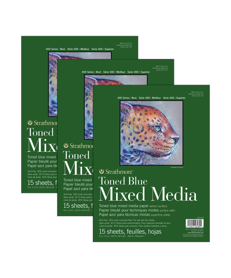 Introducing the Strathmore 400 Series Mixed Media Paper—a versatile surface for professional artists, ready to handle whatever your creativity throws at it. By combining the characteristics of watercolor paper with the finish of a drawing sheet, we've created the ultimate paper for artists to confidently explore watercolor washes, ink lines, & layers of pastel or colored pencil without fear of warping or tearing. Freely create richly dynamic pieces that truly stand out. The history of Strathmore Paper Company began on St. Patrick's Day in 1892 when its founder, Horace Moses, opened the Mittineague Paper Mill in West Springfield, MA. Strathmore has been a leading supplier of fine art papers for 130 years & founded with the belief that better paper makes better art. Strathmore provides artists of all levels with one of the widest ranges of quality surfaces for producing beautiful works of art, no matter the choice of medium. Listening to the needs of artists & providing inspiration, education, & innovating new products is at the core of what matters to Strathmore. The Strathmore 400 Series, easily recognized by its iconic brown cover, has been a staple in the hands of art students & professional artists. Known for its dependable quality & time-tested durability, this series of art paper provides high school art students, college art students, dedicated hobbyists & career artists a range of surfaces from practice to final pieces. Artists working with watercolor paint, acrylic paint, oil paint, pastel, colored pencil, charcoal, marker, pen, ink & more have a curated pad customized for their needs. Confidently create showcase-worthy pieces for galleries, competitions & online market places with this beloved brand! Sold as a pack of 3.