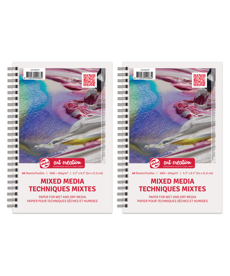 Talens Art Creation Mixed Media Paper pads are student-grade paper for wet or dry media including acrylic, watercolor, gouache, ink, markers, pencils and more. 98 lb./160 gsm, acid-free sheets. Spiral bound and perforated for easy sheet removal. 40 sheets per pad. Sold as a pack of 3.