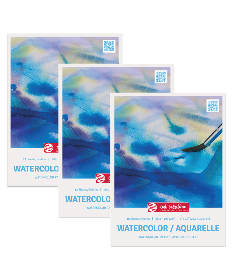 Talens Art Creation Cold Press Watercolor Paper Pads are student-grade 90 lb./190 gsm, acid-free paper specially prepared for use with watercolor. Glue bound on one side, 15 sheets per pad. Sold as a pack of 3.