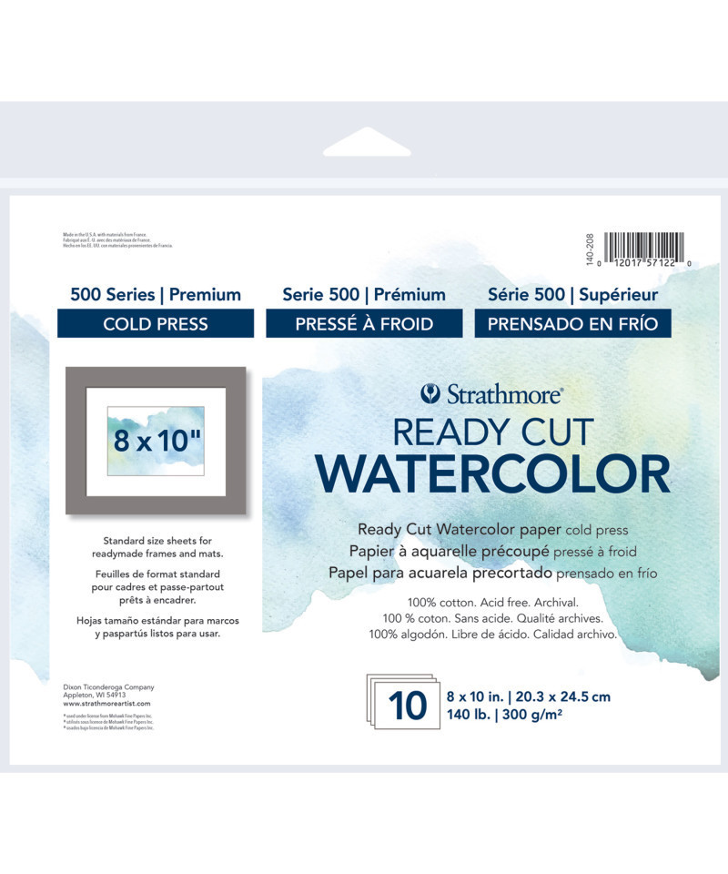 Introducing Strathmore 500 Series Ready Cut Watercolor Paper--designed for professional artists, these standard-size sheets fit readymade frames and mats, saving you time, hassle, and framing costs. Crafted with a harder sizing than traditional “old world” papers, this premium surface offers exceptional strength, making it perfect for intricate watercolor techniques. Ideal for intermediate to advanced watercolorists, it delivers superior water holdout, effortless color lifting, and seamless blending. Made from 100% cotton, acid-free, and archival-quality, this paper ensures your artwork stands the test of time with vibrant, lasting results. Our 500 Series sets the standard for excellence within the fine art industry, featuring superior-grade surfaces crafted with 100% cotton fibers for unmatched durability, carefully crafted textures & archival, acid-free composition. Endorsed by professional artists as the surface of choice for art pieces showcased in galleries, sold at auctions or submitted to the most prestigious competitions.