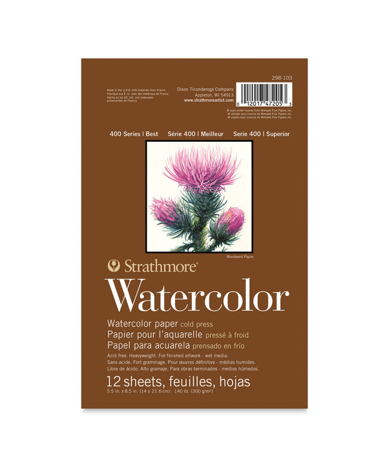 Introducing Strathmore 400 Series Watercolor Paper—a cold press sheet offering just the right amount of texture to bring depth & character to every brushstroke. Its absorbent surface beautifully captures vibrant colors while allowing for smooth blends & soft transitions, making your watercolors come to life. This versatile paper is perfect for everything from delicate washes to bold, expressive techniques, perfect for professional watercolor artists. Our 400 Series is often easily recognized thanks to the iconic brown cover used across our fine art pads. Known for its dependable quality & time-tested durability, this series is a staple in the hands of art students & professional artists, from their first art class in middle school, through to high school competitions, collegiate course work & on to a career as a professional artist, fashion designer, architect, illustrator, animator or engineer. Artists working with watercolor paint, acrylic paint, oil paint, pastel, colored pencil, charcoal, marker, pen, ink & more have a curated paper customized for their needs. Confidently create showcase-worthy pieces for galleries, competitions & online market places with this beloved series!