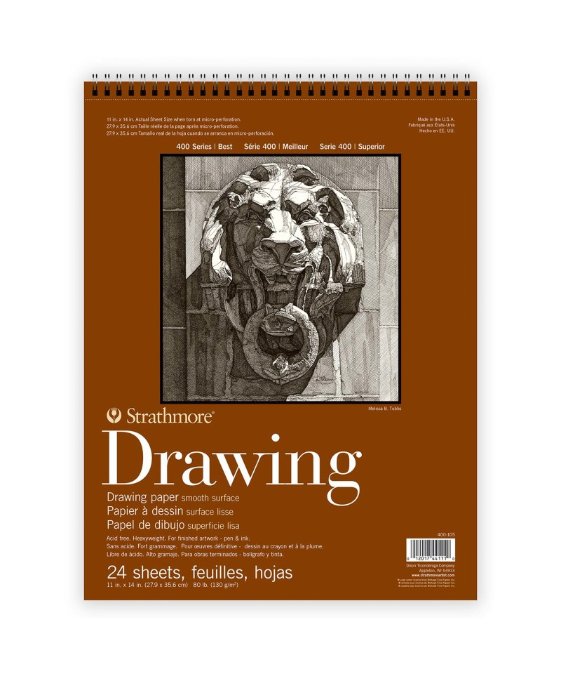 Strathmore 400 Series Drawing Paper Pad, Smooth Finish, Top Wire Binding, 24 Sheet, 11x14 inch, 1 Count