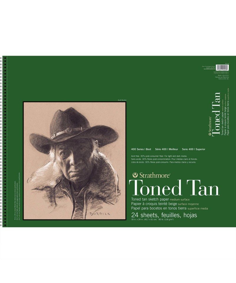 Strathmore 400 Series Sketch Paper Pad, Recycled, Toned Tan, Side Wire Binding, 24 Sheet, 18x24 inch, 1 Count