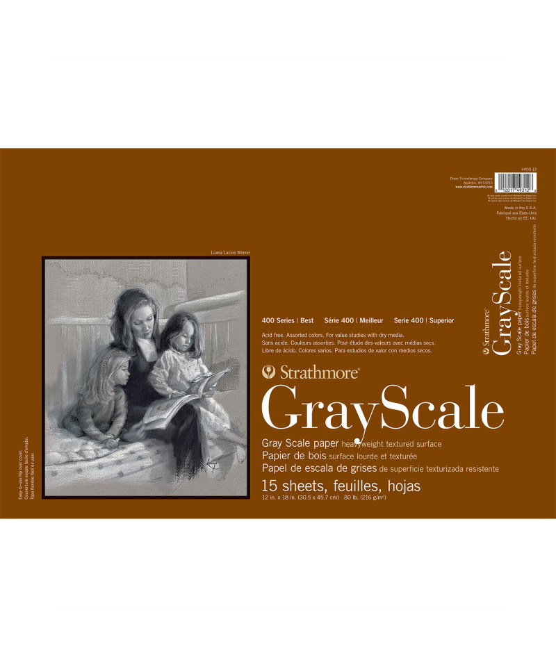 Introducing Strathmore 400 Series Gray Scale Paper-- a textured heavyweight paper in gray scale colors ranging from white to black, making it perfect for value studies using charcoal, pastel, chalk, and sketching sticks. Our 400 Series is often easily recognized thanks to the iconic brown cover used across our fine art pads. Known for its dependable quality & time-tested durability, this series is a staple in the hands of art students & professional artists, from their first art class in middle school, through to high school competitions, collegiate course work & on to a career as a professional artist, fashion designer, architect, illustrator, animator or engineer.