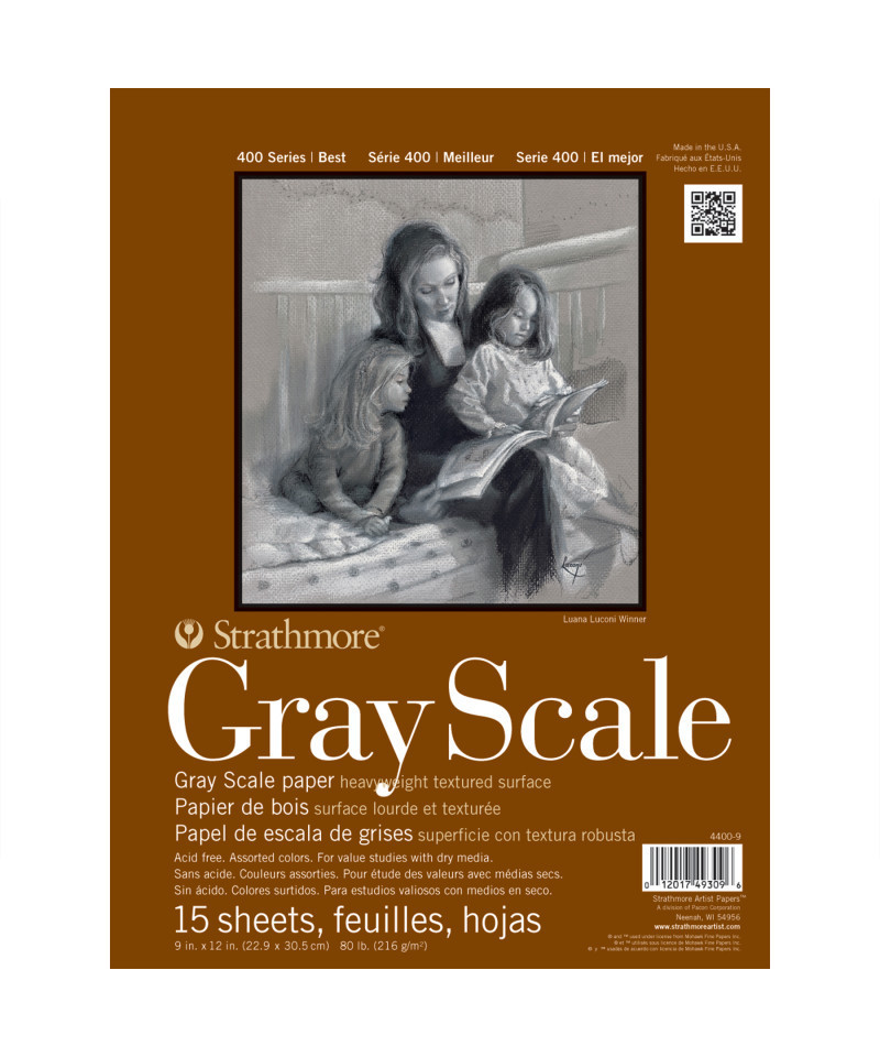 Introducing Strathmore 400 Series Gray Scale Paper-- a textured heavyweight paper in gray scale colors ranging from white to black, making it perfect for value studies using charcoal, pastel, chalk, and sketching sticks. Our 400 Series is often easily recognized thanks to the iconic brown cover used across our fine art pads. Known for its dependable quality & time-tested durability, this series is a staple in the hands of art students & professional artists, from their first art class in middle school, through to high school competitions, collegiate course work & on to a career as a professional artist, fashion designer, architect, illustrator, animator or engineer.