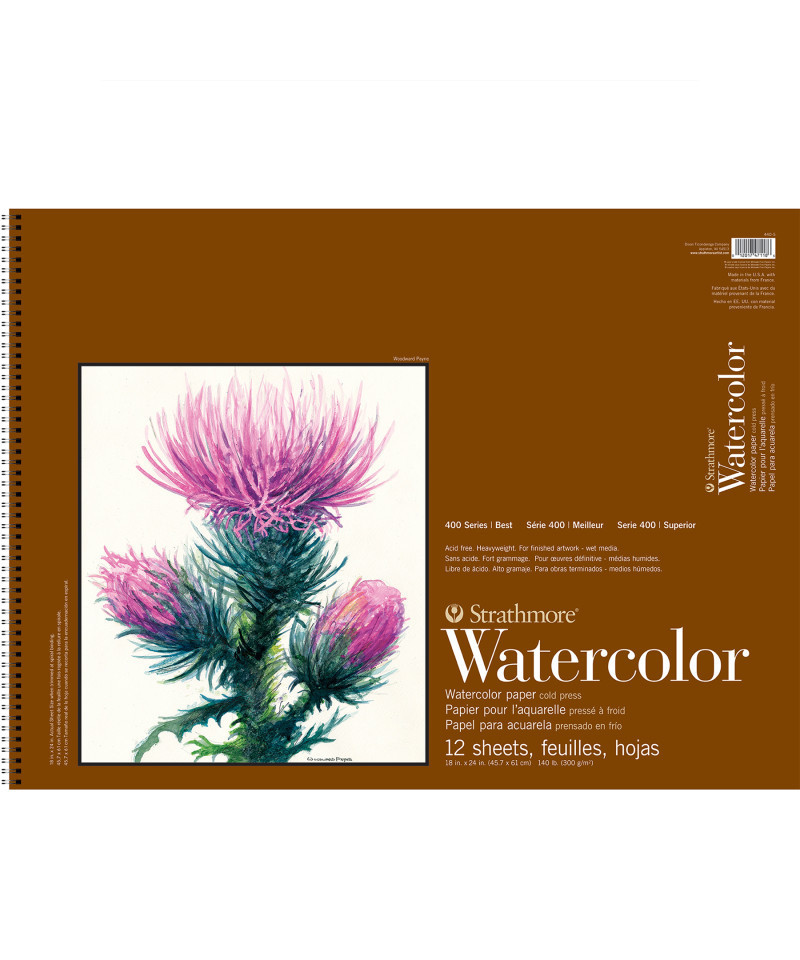 Strathmore 400 Series Watercolor Paper Pad, Cold Pressed, Side Wire Binding, 12 Sheet, 18x24 inch, 1 Count