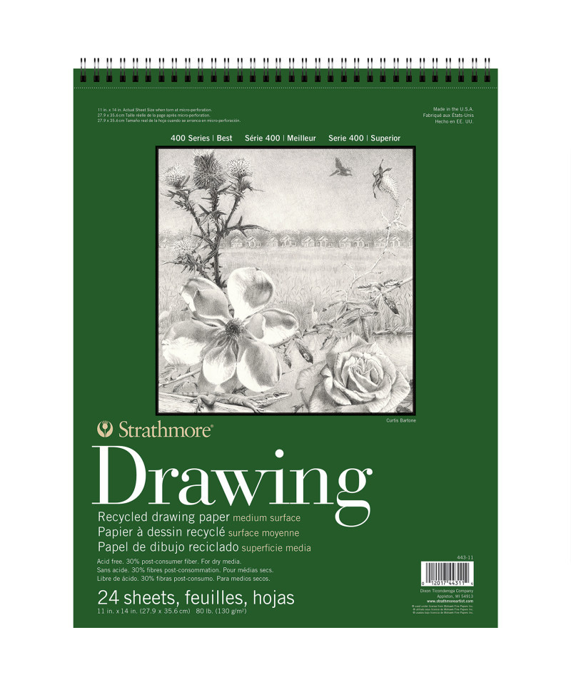 Strathmore 400 Series Drawing Paper Pad, Recycled, Top Wire Binding, 24 Sheet, 11x14 inch, 1 Count