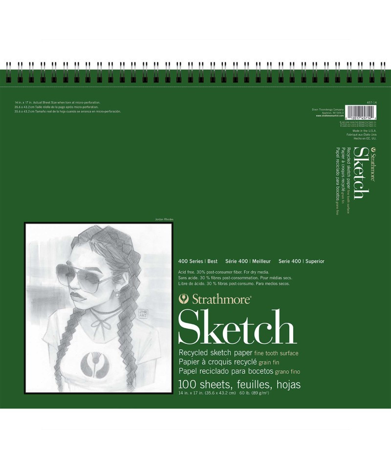 Strathmore 400 Series Sketch Paper Pad, Recycled, Side Wire Binding, 100 Sheet, 14x17 inch, 1 Count