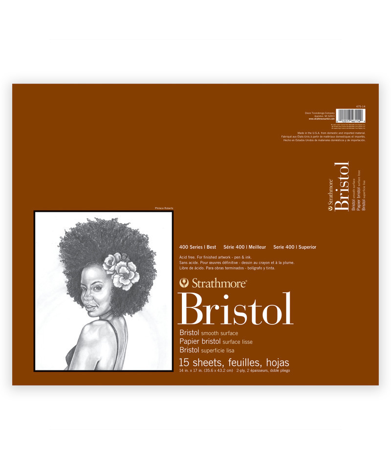 Introducing Strathmore 400 Series Bristol Paper—expertly crafted from 2-ply Bristol, providing a smooth, durable surface perfect for fine line and detailed drawings with pen, ink, and marker. A popular choice among illustrators & drawing artists because of a stiffer, museum quality surface that is ready to display without additional mounting. The term Bristol derives from the early days of European papermaking when mills would send their finest papers to Bristol, England to be pasted together to form heavyweight drawing sheets. Our Bristol Paper is available in two finishes: Smooth is excellent for fine line drawings using pen & ink or marker; Vellum is excellent for pencil, charcoal, and pastel, as well as airbrush and light washes. Our 400 Series is often easily recognized thanks to the iconic brown cover used across our fine art pads. Known for its dependable quality & time-tested durability, this series is a staple in the hands of art students & professional artists, from their first art class in middle school, through to high school competitions, collegiate course work & on to a career as a professional artist, fashion designer, architect, illustrator, animator or engineer. Artists working with watercolor paint, acrylic paint, oil paint, pastel, colored pencil, charcoal, marker, pen, ink & more have a curated paper customized for their needs. Confidently create showcase-worthy pieces for galleries, competitions & online market places with this beloved series!