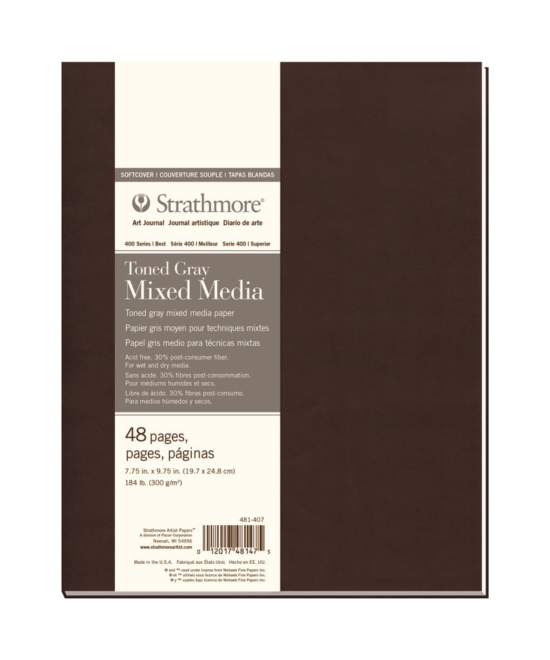 Strathmore 400 Series Art Journal Mixed Media Paper, Toned Gray, Soft Cover Binding, 96 Page/48 Sheet, 7.75x9.75 inch, 1 Count
