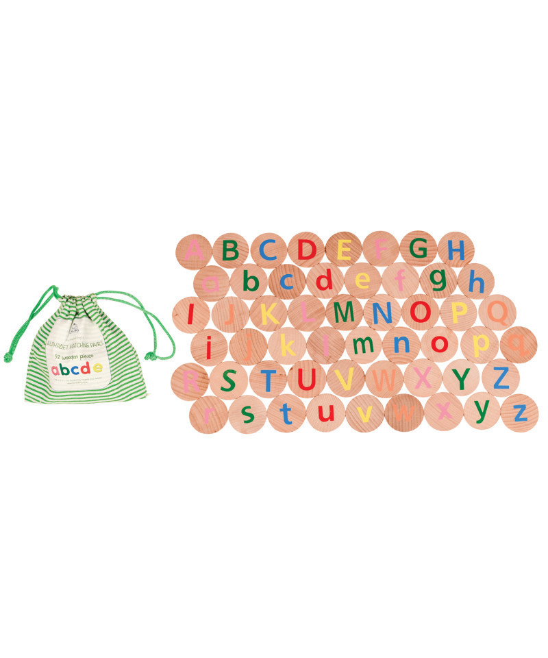 INCLUDES 52 UPPER AND LOWERCASE LETTERS -- This matching game includes 52 wooden disks with 26 upper and 26 lowercase letters. Match the upper and lowercase pieces to develop letter recognition, phonemes and phonics!