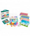 This translucent plastic abacus has a 5 column base and 50 pieces in different colors and shapes. A fun and useful material, it provides hands-on learning that works on children's classification and serialization skills. It comes with transparent activity sheets with increasing difficulty levels, which can be used on light tables. This abacus helps children acquire basic mathematical knowledge and boost their ability to focus and concentrate, while they have fun.