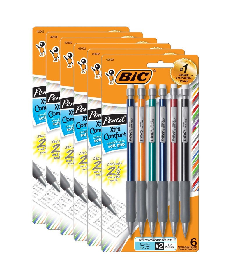 Enjoy a comfortable writing experience with the BIC Xtra-Comfort Mechanical Pencil. Featuring a soft grip that provides better writing control and comfort, this mechanical pencil comes with smooth-writing #2 lead that does not smudge and erases cleanly. The lead advances quickly and easily with a simple click, eliminating the need for sharpening. Ideal for standardized tests, each pencil comes with three #2 leads that create accurate, crisp marks. Available in a variety of vibrant barrel colors, BIC Xtra-Comfort Mechanical Pencils are great for school, home, or the office. Each pack includes 6 pencils. Sold as 6 packs for a total of 36 pencils total.